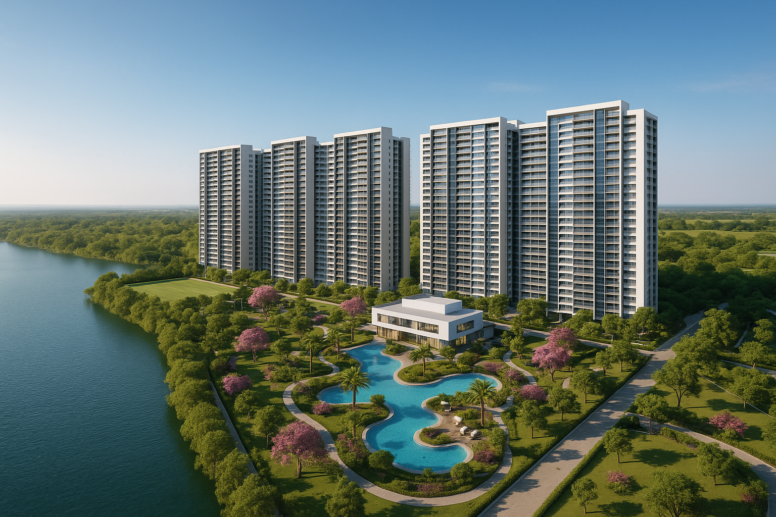3 Clubhouses (each 73,000 sq. ft.) with gym, party halls, and indoor games